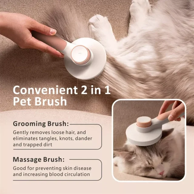 Introducing the perfect grooming tool for your furry friends! Our 2-in-1 Cat Hair Brush and Pet Grooming Comb is designed to make your pet’s grooming routine a breeze. Whether you’re caring for a playful kitten, a lovable dog, or even a rabbit, this versatile brush helps you remove shedding fur, dirt, and tangles while providing a soothing massage that pets love. With its gentle, skin-friendly bristles and innovative one-click cleaning feature, you can keep your pet’s coat healthy, shiny, and free from fleas and parasites. Make grooming an enjoyable bonding time with your pet!