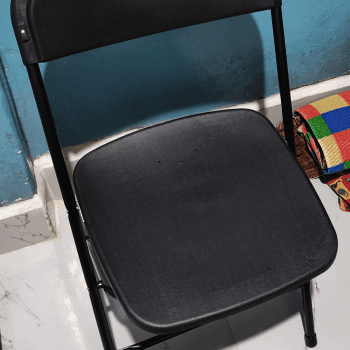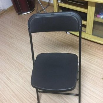 This black folding chair is a lifes for unexpected guests, and it's comfortable too.
